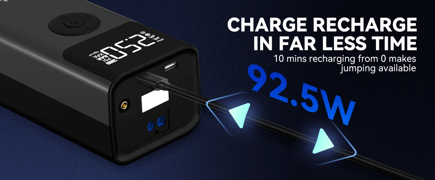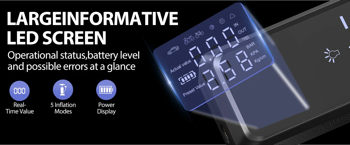 Compact, durable, and lightweight, this device also features LED indicators and multiple safety protections including overcurrent, short-circuit, and reverse polarity protection. Perfect for cars, trucks, SUVs, and motorcycles, it ensures you are never stranded due to a dead battery or low tire pressure.