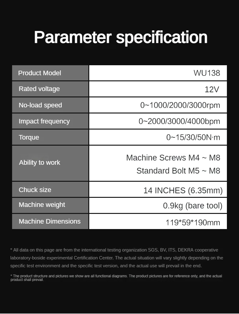 Equipped with a high-performance lithium-ion battery, the WU138 ensures long runtime and fast charging, while the compact design allows easy access to tight spaces. Perfect for professional construction, DIY projects, furniture assembly, and maintenance tasks, this drill combines durability, power, and precision in a single, reliable tool.