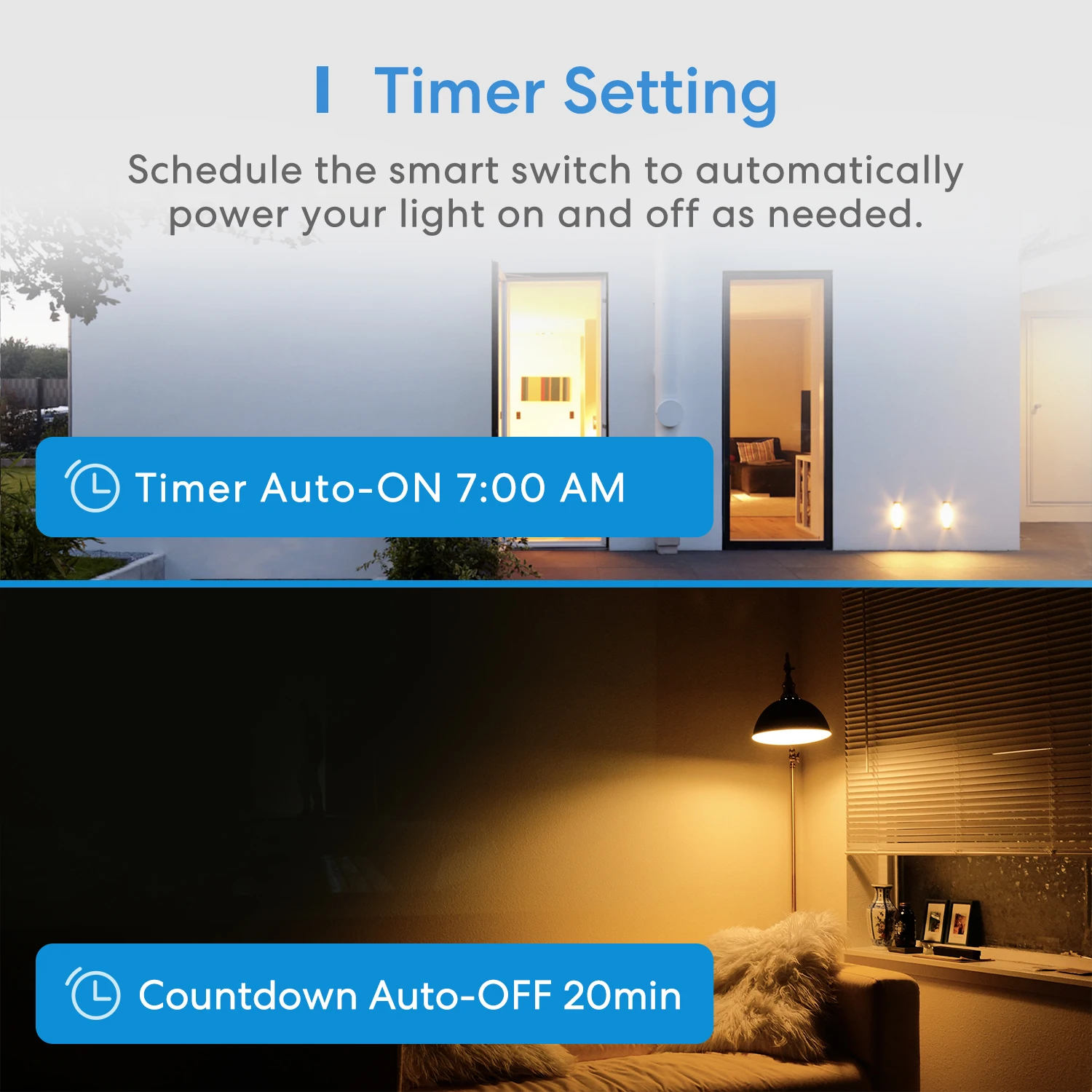 This 3-Way WiFi Smart Light Switch upgrades any traditional 3-way setup, letting you control one light from two locations while adding full smart functionality.
