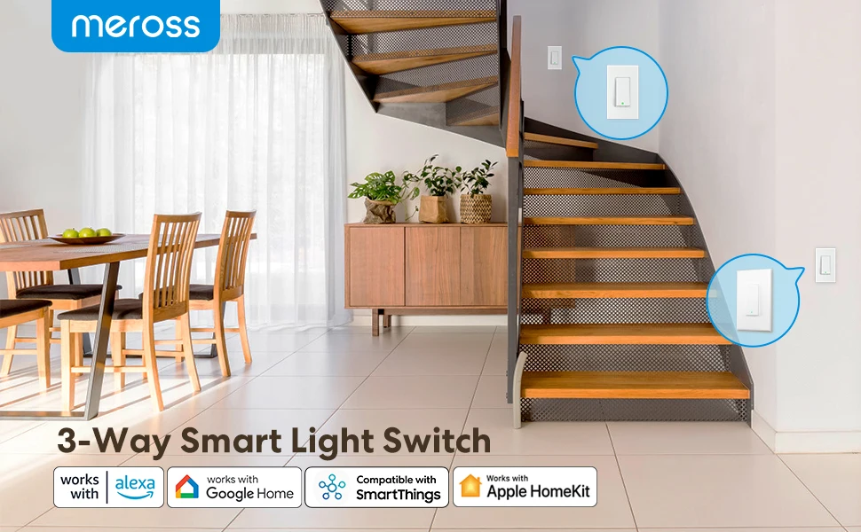 3-way smart switch compatible with all these platforms, Apple Homekit(iOS 13 or above), Apple Watch, Siri, Carplay, Amazon Alexa Google Assistant and SmartThings.